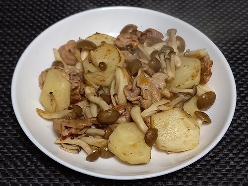 夕食のおかず(兼お弁当のおかず)に豚肉とじゃがいもとしめじの炒め物を作りました。 簡単な塩こしょう炒めですが、作り方をメモしておきます。 材料は豚肉(もも切り落とし肉)約90g、じゃがいも2個、ぶなしめじ1株、片栗粉適量、塩こしょう適量です。 豚肉は…
