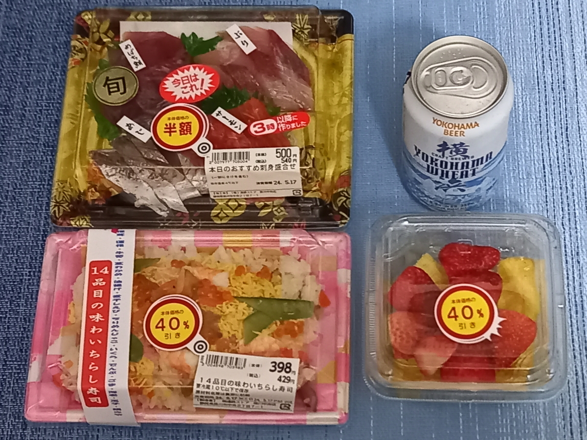 お刺身だけだと足りないかなと思ったので、ちらし寿司も購入。