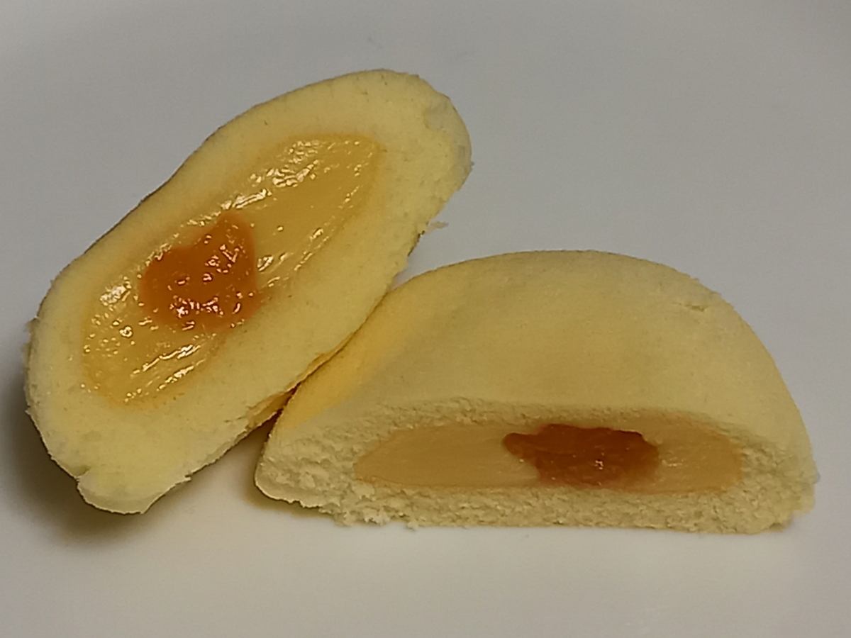 なめらかなカスタードクリームの中に、青森県産りんごで作った果肉入りアップルソースを閉じ込めたふんわりケーキ。