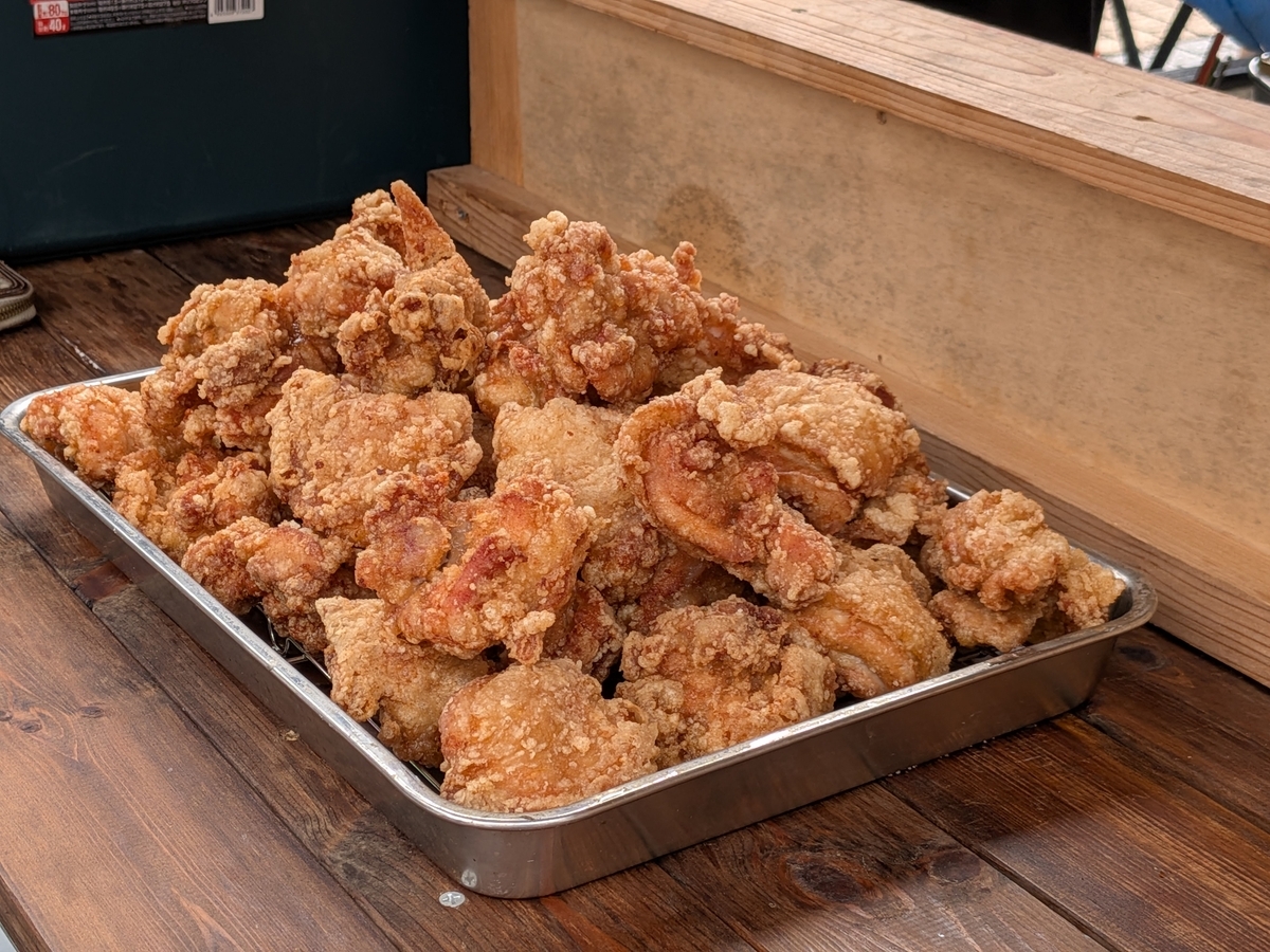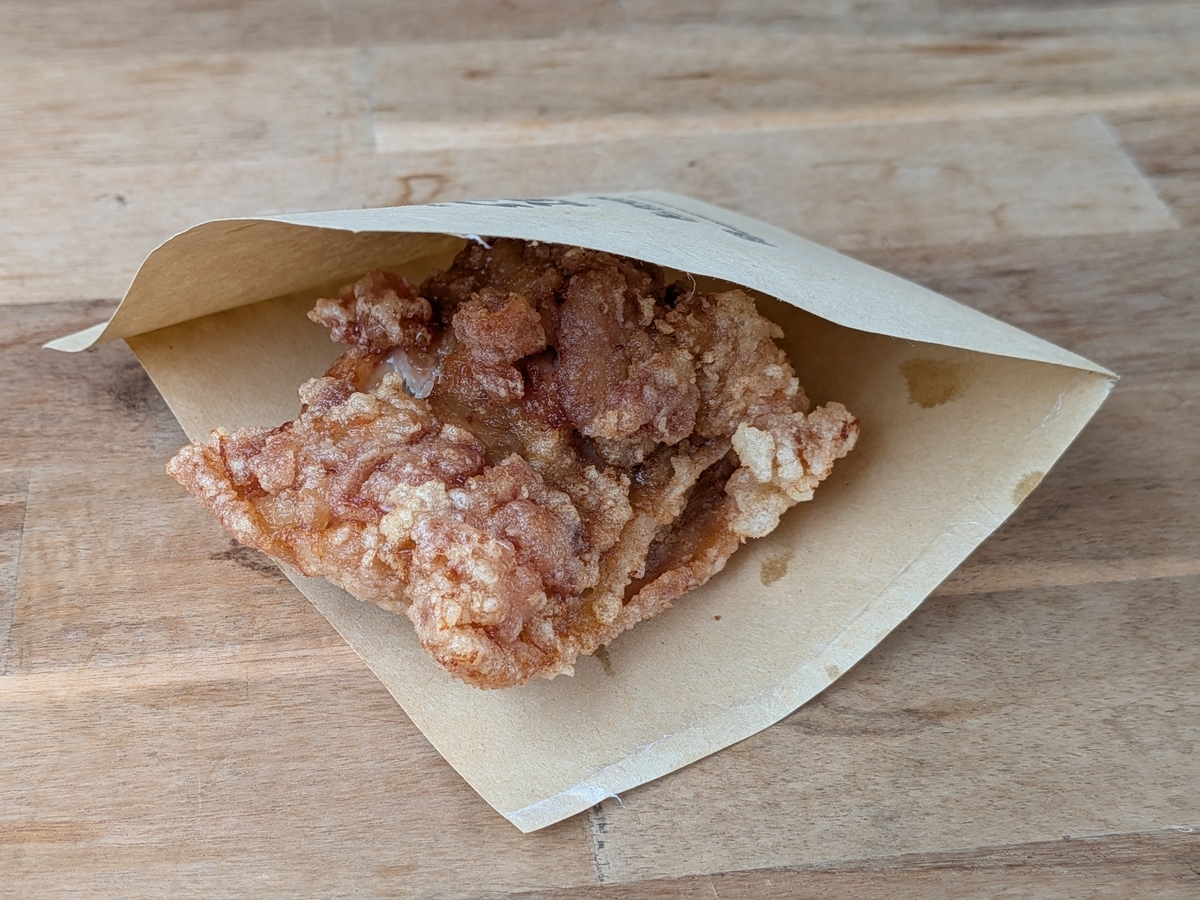 でっけぇ唐揚げが美味しそうだったので、買って食べることにしました。