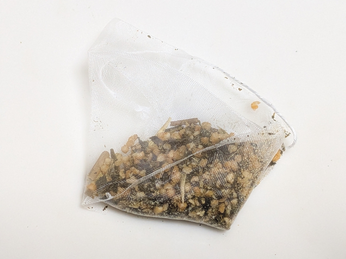 ティーバッグの素材は植物のデンプンを原料としたバイオマス素材、ポリ乳酸から作られた不織布フィルター環境循環型素材「ソイロン」を使用しているそう。