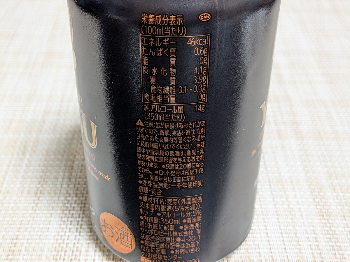 原材料名は麦芽(外国製造又は国内製造(5%未満))、ホップ。