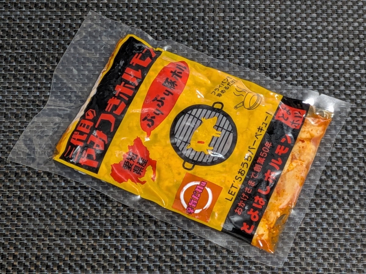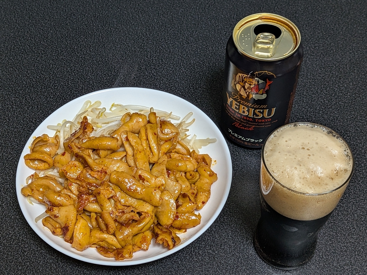 夕食(ビールのお供)は豚ホルモンを買ってきて、焼いて食べました。