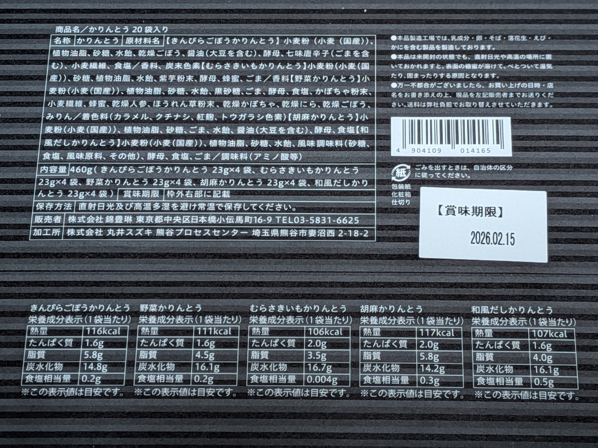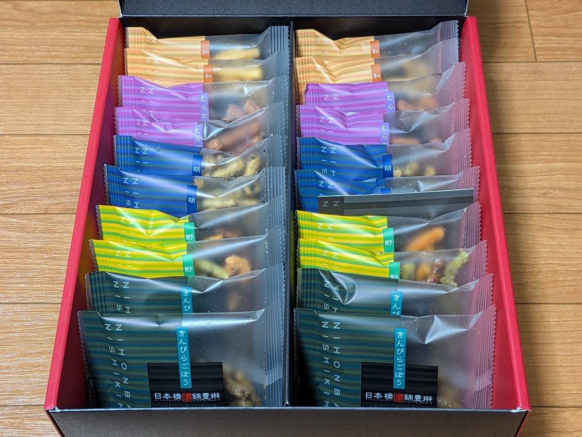 先日、東京の日本橋を訪れた時に、かりんとう専門店の日本橋錦豊琳さんでかりんとう小袋詰合せを買ってきました。