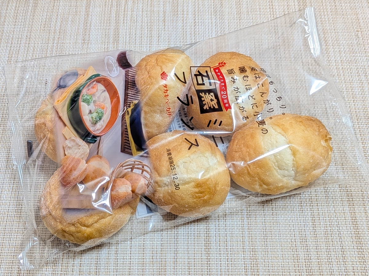 フランスパンは、タカキベーカリー㈱の石窯ミニフランス。