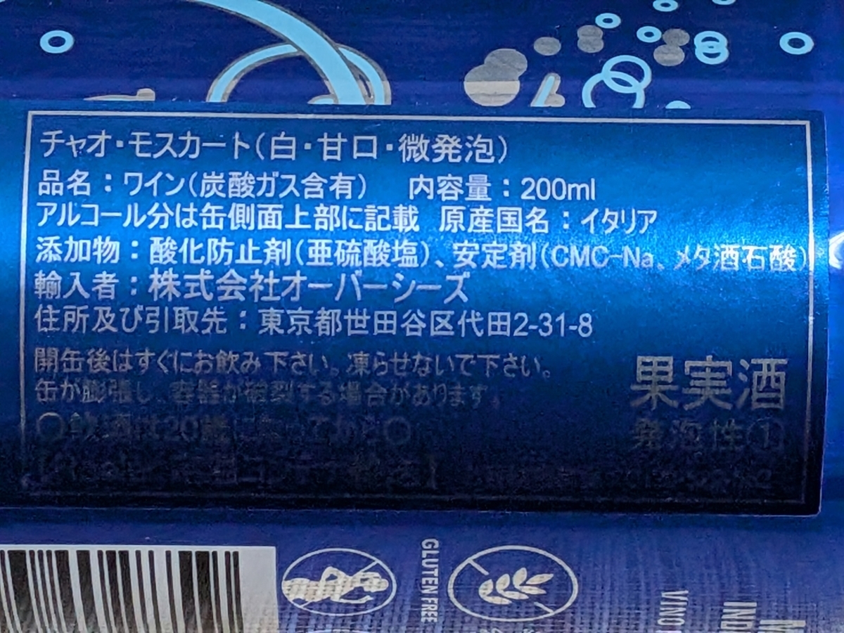 添加物は酸化防止剤(亜硫酸塩)、安定剤(CMC-Na、メタ酒石酸)。