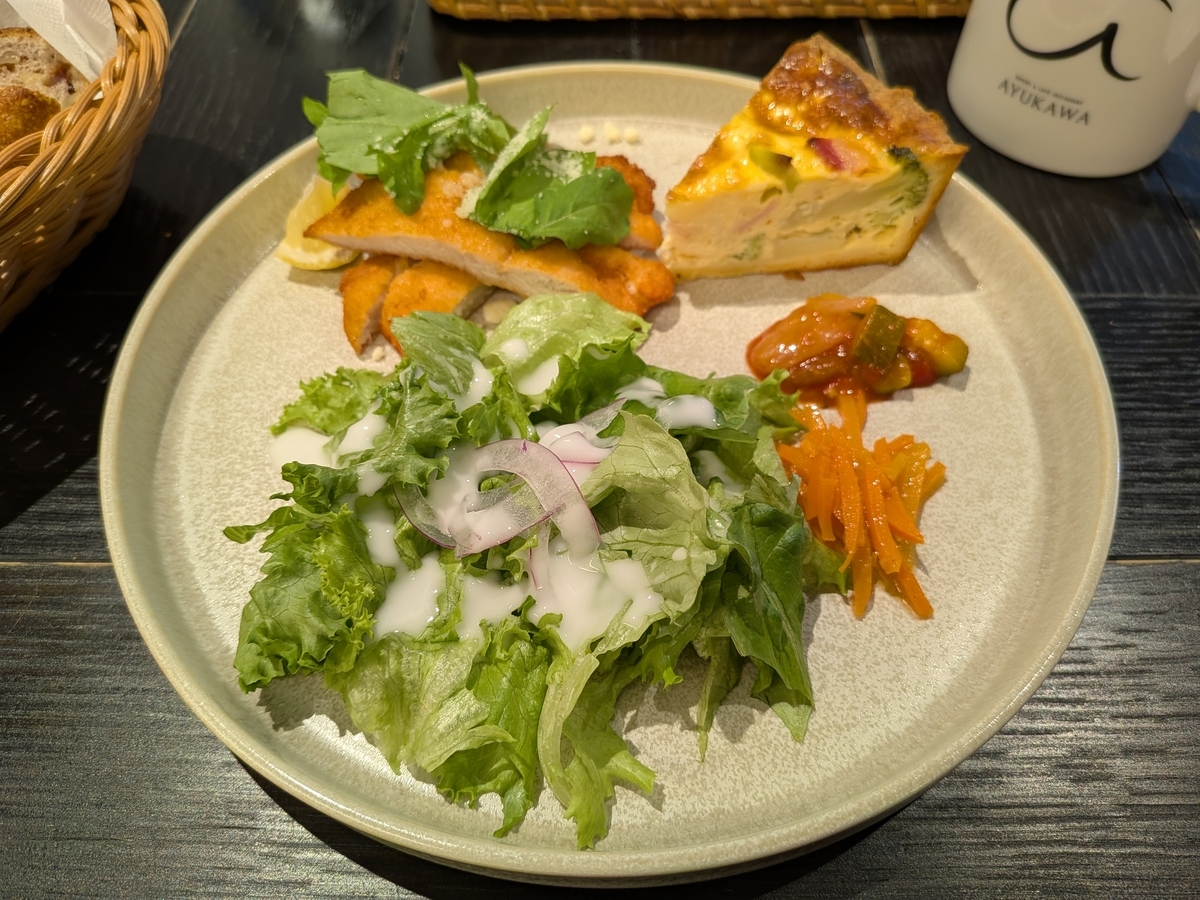 ビーフシチューも美味しそうと思いましたが、Bの国産若鶏のカツレツと自家製キュッシュプレート(ブレッド&スープセット)をオーダーしました。