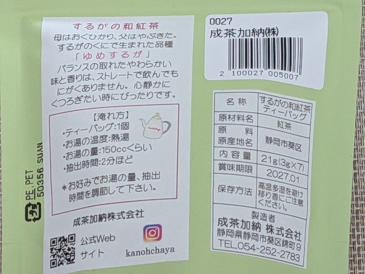 母は「おくひかり」、父は「やぶきた」、するがのくにで生まれた品種「ゆめするが」の紅茶だそうです。